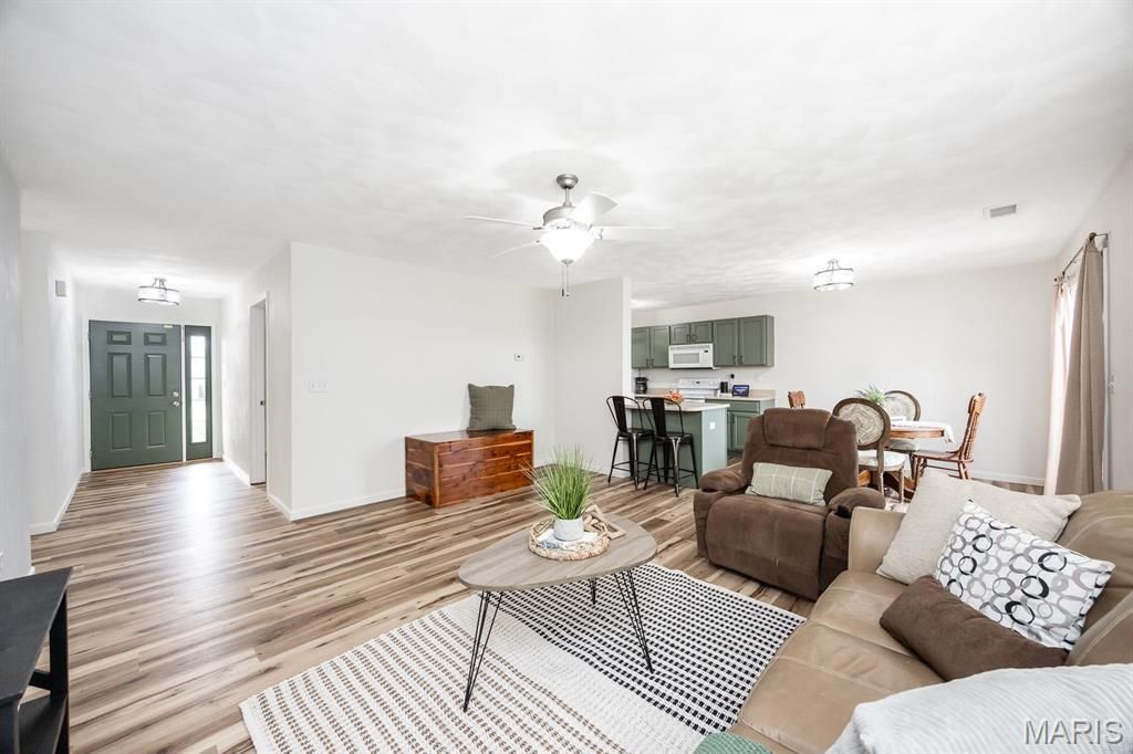 Freshly painted and featuring new luxury vinyl plank flooring throughout, this affordable 3-bedroom, 2-bath home is full of charm and possibility. The bright open floor plan creates an easy flow from the lively living room to the dining area and inviting kitchen-perfect for everyday living or hosting friends. The large eat-in kitchen offers great workspace and functionality, while main-floor laundry adds convenience. A 1-car garage provides extra storage, and the fully fenced backyard offers space to play, relax, or garden. With its fresh updates, cheerful layout, and unbeatable value, this home delivers the lifestyle you've been looking for. Buyers to verify all information.